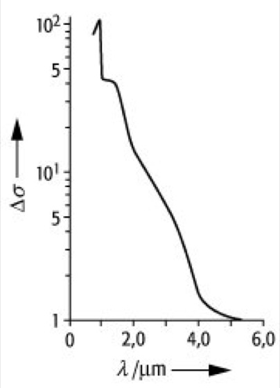 Photoleitung 1: Änderung der Photoleitfähigkeit einer GaAs-Schicht in Abhängigkeit von der Wellenlänge des eingestrahlten Lichts.