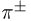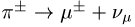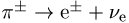 Die geladenen Pionen (Masse 139,567 3 MeV / c² und Spin 0) zerfallen nach 2,6 · 10-8 s zu etwa 100 % über schwache Wechselwirkung gemäß