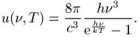 Plancksche Strahlungsformel, eine von M. Planck aufgestellte Formel. Sie beschreibt die Energiedichte u(ν, T) der elektromagnetischen Strahlung eines schwarzen Körpers – der Hohlraumstrahlung – in Abhängigkeit von der Strahlungsfrequenz ν und der Gleichgewichtstemperatur T der Strahlung (siehe Abb.):