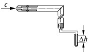 Prandtlsches Staurohr: Bestimmung der Strömungsgeschwindigkeit c durch Messung des dynamischen Druckes q = ρg Δh = c2 · ρ / 2 (ρ: Dichte des strömenden Mediums, g: Erdbeschleunigung).