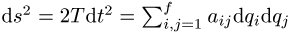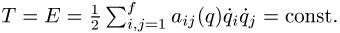 ; geht man zu verallgemeinerten Koordinaten qj über (j = 1, ..., f, f: Anzahl der Freiheitsgrade), so ergibt sich für die kinetische Energie, die im vorliegenden Fall mit der Gesamtenergie übereinstimmt,