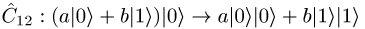 . Das Qubit des zweiten, sogenannten Ziel-Qubits wird dann und nur dann invertiert, wenn das erste, sogenannte Kontroll-Qubit den Wert 1 hat (siehe nebenstehende Wahrheitstafel). Durch zusätzliche Phasendrehungen lassen sich Phasenfaktoren