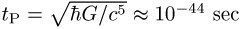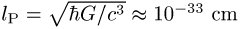 In den Einheiten der Elementarteilchenphysik entspricht das der enormen Masse von etwa 1019 GeV. Die zugehörigen Längen- und Zeitskalen sind die Planck-Länge![]()