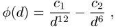 wobei d der Abstand der beiden Atome und c1 / 2 Konstanten sind.