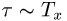 RC-Glied 3: Übertragung (Verzerrung) von Rechteck-Impulsen der Dauer Tx durch ein RC-Glied bei verschiedenen Zeitkonstanten τ: a: