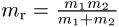 reduzierte Masse, Rechengröße mit der Dimension einer Masse, die bei der Rückführung eines Zweikörperproblemes auf das äquivalente Problem eines Massenpunktes im Kraftfeld auftritt. Der Wert der reduzierten Masse beträgt