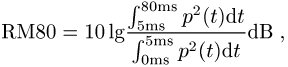 wobei p(t) das Schalldrucksignal der Raumimpulsantwort am Ort des Hörers ist. Das gegenseitige Hören ist um so besser, je größer RM80 ist. Anzustreben ist RM80 ≥ 0 dB.