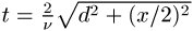 Die Laufzeit t der reflektierten Welle im Horizontalabstand x von der Quelle ist bei Reflektortiefe d durch