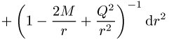 Reisner-Nordström-Lösung, Lösung der Einstein-Gleichungen für ein statisches, sphärisch-symmetrisches Gravitationsfeld mit einem radialen elektrischen Feld