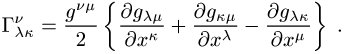 führt, oder mittels der Geodätengleichung (Geodäte). Dabei sind die Komponenten des Riemannschen Zusammenhangs gegeben durch: