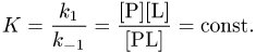 Hierbei sind [P], [L] und [PL] die molaren Konzentrationen des freien Biomakromoleküls, des freien Liganden und des Komplexes. Durch Umstellung erhält man