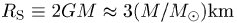 gibt die Lage des Ereignishorizontes an. Ein Beobachter, der durch diesen Horizont fällt, trifft in endlicher Eigenzeit auf die Singularität (die Eigenzeit vom Horizont bis zur Singularität beträgt für freien Fall ![]()