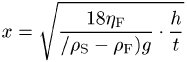 (rS und ρF: Dichte der Körnung und der Flüssigkeit, ηF: Viskosität der Flüssigkeit).