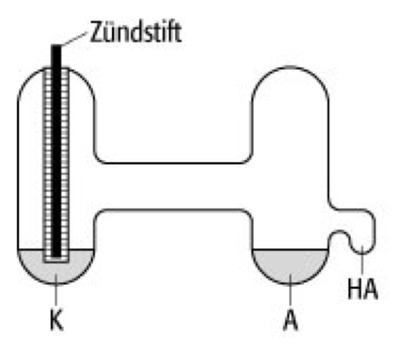 Senditron: Schemazeichnung (K: Kathode, A: Anode, HA: Hilfsanode).