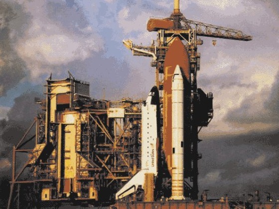 Space Shuttle, amerikanisches Raumtransportsystem, das im Gegensatz zu konventionellen Trägerraketen auf dem Prinzip der Mehrfachverwendung beruht. Der Entwicklungsbeginn des Space Shuttles reicht zurück in die Zeit des Apollo-Programms und verursachte im Laufe seiner Entwicklung Kosten von über 10 Milliarden US-Dollar. Das Space Shuttle-System ist für eine maximale Nutzlast von etwa 30 t bei einer Zielbahnhöhe von 185 km ausgelegt, für noch höher liegende Umlaufbahnen verringert sich die Nutzlast entsprechend. Allein der bemannte und nutzlasttragende, deltaförmige ›Orbiter‹ wurde dabei als Raumgleiter ausgelegt, d.h. dieser ist die einzige Komponente, die nach ihrem Aufenthalt in einer Umlaufbahn aerodynamisch und antriebslos zur Erde zurückkehrt. Der Treibstoff für die Haupttriebwerke des Orbiters ist in einem entsprechend großen Außentank untergebracht, der noch vor Erreichen der Zielbahn nach Brennschluß abgetrennt wird und nicht wiederverwendbar ist. In der ersten Startphase wird das System zudem von zwei Feststofftriebwerken, den sog. Boostern, angetrieben, die nach Brennschluß an Fallschirmen im Meer niedergehen und eingeschränkt wiederverwendbar sind. Für das Erreichen der Zielbahn und weitere Bahnmanöver ist der Orbiter mit speziellen Manövriertriebwerken ausgestattet, deren Treibstoff sich an Bord des Shuttles befindet. Die Ladebucht des Shuttles bietet Platz für das Aussetzen und Einholen von Satelliten sowie für das Weltraumlabor Spacelab. Der Kabinenteil des Orbiters hat drei Etagen und bietet neben dem Cockpit (oberste Etage) noch Platz für den Wohn- und Arbeitsbereich von bis zu sieben Astronauten. Bis auf den tragischen Totalverlust des Space Shuttles Challenger am 28. Januar 1986 ist es bei den bis heute absolvierten Shuttleflügen zu keinen schwerwiegenden Zwischenfällen gekommen.
