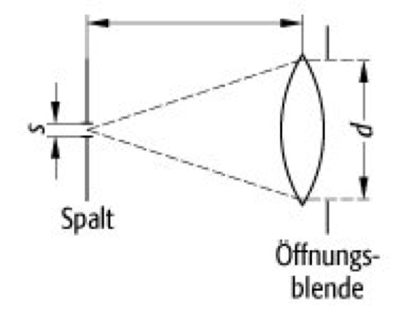 Spalt, schmale, im allgemeinen rechteckige Blende in einem optischen Gerät, die z.B. im Spektralapparat eingesetzt wird, um das eintretende Lichtbündel zu begrenzen. Das Bild des Eintrittsspaltes ist das Spektrum, wobei das monochromatische Bild aus einer Spektrallinie besteht. Diese läßt sich durch Verringerung der Spaltbreite unter Verlust der Helligkeit bis auf einen durch die Beugung bedingten Grenzwert einengen. Die optimale Spaltbreite sopt ist gegeben durch sopt= λf / d, wobei λ die eingestrahlte Wellenlänge, f die Brennweite der sammelnden Linse und d deren Durchmesser bzw. der einer Öffnungsblende ist. Die Spaltbildfunktion beschreibt die Intensitätsverteilung in der Auffangebene eines optischen Systemes bei der inkohärenten Abbildung eines Spaltes (siehe Abb. 1+2). Nach der Korrektur der Spaltbreite kann aus der gemessenen Spaltbildfunktion die Linienbildfunktion gewonnen werden.