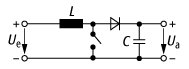 Sperrwandler: Schaltbild (Ue: Eingangsspannung, Ua: Ausgangsspannung, L: Induktivität, C: Kapazität).