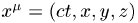 Die mathematische Struktur der relativistischen Raumzeit wird durch den Tensorkalkül transparent. Im vorigen Abschnitt wurde gezeigt, daß das Ereignisintervall ![]()