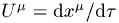 die Weltlinie des Teilchens, parametrisiert durch die Eigenzeit. Falls wir ![]()