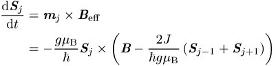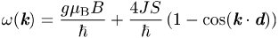 : Plancksches Wirkungsquantum, J: Austauschintegral). Dabei ist Beff das effektive Magnetfeld, das sich aus dem Austauschfeld und einem etwaigen externen Feld B zusammensetzt. Aus der Differentialgleichung erhält man die Dispersionsrelation für die Kreisfrequenz ω und den Wellenvektor k :