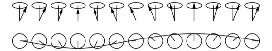 Spinwelle, kollektive Präzession der Spins in magnetisch geordneten Materialien. Ähnlich den Gitterschwingungen kommt es durch die Kopplung magnetischer Momente sowie der Translationssymmetrie zu einer wellenartigen Ausbreitung einer Störung der Spinanordnung. Ein einfacher Fall für die theoretische Beschreibung ist die Bewegung eines Spinvektors Sj am Ort j innerhalb einer Spinkette mit ferromagnetischer Ordnung. In der klassischen Betrachtungsweise des Elektronenspins lautet die Bewegungsgleichung eines Drehimpulses (= Spin S):