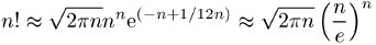 Stirling-Formel, asymptotische Näherungsformel zur Berechnung der Fakultätfunktion