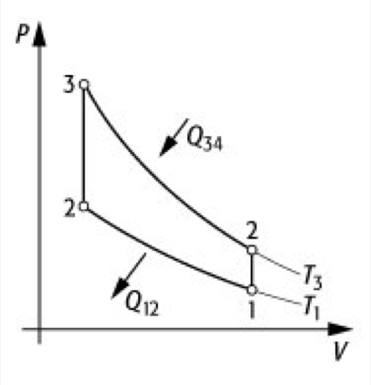 , wobei T1 die Temperatur im Zustand 1 und T3 die im Zustand 3 ist; er ist gleich dem Wirkungsgrad des Carnotschen Kreisprozesses.