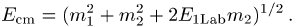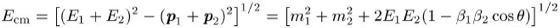 . Die bei einer Kollision zweier Teilchen mit Massen m1, m2 erzeugte Schwerpunktsenergie (center of mass) hat die Lorentz-invariante Form
