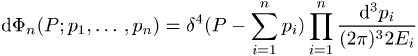 angegeben, aus der sich für einen Zerfall eines Teilchens mit Masse M in n Teilchen in dessen Ruhesystem die Zerfallsrate