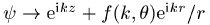 mit der Randbedingung, daß sich in großer Entfernung vom Streuzentrum die Wellenfunktion als Überlagerung aus einfallender ebener Welle und auslaufender Kugelwelle darstellt, beschrieben: