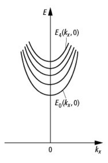 bei Einschränkung in z-Richtung (siehe Abb.). Scharfe Subbänder treten nur dann auf, falls die Energieeigenwerte