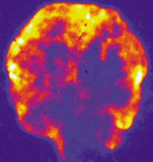 Den Beginn des Helligkeitsanstiegs der Supernovae erklären diese Modelle als den Zeitpunkt, an dem die immer noch heißen äußeren Schichten zu expandieren beginnen. Erst wenn die Gasdichte weit genug abgesunken ist, kann das Gas auf Grund seiner Strahlung abkühlen, und die Helligkeit fällt wieder ab. Das expandierende Gas trifft schließlich auf die interstellare Materie, die es wie bei einem Schneepflug vor sich herschiebt und so die kugelförmigen Strukturen der Supernovaüberreste (supernova remnant, SNR) erzeugt (siehe Abb. 3). Entsprechend den beiden Supernovatypen unterschiedet man hier ebenfalls zwei Haupttypen. Schalenförmige SNR werden durch Typ-Ia-Supernovae hervorgerufen. Sie bestehen aus einer heißen, aber im wesentlichen leeren Kugelschale aus Sternmaterie und aufgeschobener interstellarer Materie. SNR, die von Typ-II-Supernovae hervorgerufen werden, bestehen dagegen aus einer weniger deutlich ausgeprägten äußeren Gasschale, die von einem mehrere Millionen Grad heißen Gas angefüllt ist.