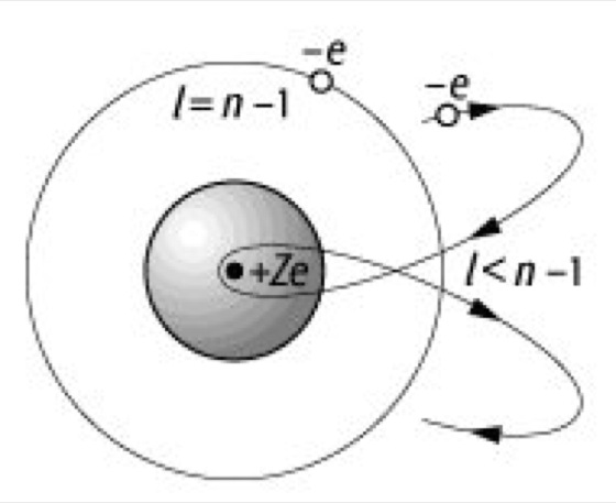 Tauchbahn, Elektronenbahn, die das Leuchtelektron eines Mehrelektronenatoms in Kernnähe und damit in den Bereich der inneren Elektronen bringt. Tauchbahnen treten insbesondere bei Alkaliatomen auf, wenn sich das Valenzelektron in einem Zustand mit kleiner Drehimpulsquantenzahl l aufhält (siehe Abb). Nach dem Sommerfeldschen Atommodell entspricht dies Bahnen mit großer Exzentrizität. Auf diesen Bahnen ist die Kernladung nicht mehr vollständig von den inneren Elektronen abgeschirmt. Auf Grund der stärkeren effektiven Kernladung sinkt die Lage des Energieniveaus für kleine l, und damit ist die Entartung der Energieniveaus in l, die man beim Wasserstoffatom beobachtet, aufgehoben. (Quantendefekt)