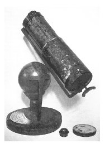 Teleskop 2: Einer von Newtons ersten Reflektoren aus dem Jahre 1671. Der Spiegel besaß einen Durchmesser von fünf Zentimetern.