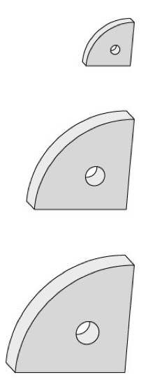 thermische Ausdehnung: Thermische Ausdehnung eines Flächenelements mit einem Loch. Das Loch dehnt sich im selben Maße aus wie das Material; es verhält sich also so, als sei es mit Material gefüllt.