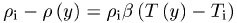 schreiben, wobei sich die relative Dichteänderung durch die absolute Temperaturänderung und den thermischen Ausdehnungskoeffizientenβ (thermische Ausdehnung) ausdrücken läßt: