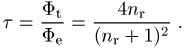 Bei Vernachlässigung der Absorption erhält man aus den Fresnelschen Formeln für die polarisationsabhängige Transmission und Reflexion von Licht am Übergang zwischen zwei Medien mit den Brechzahlen n1 und n2 mit nr = n2 / n1 den Transmissionsgrad