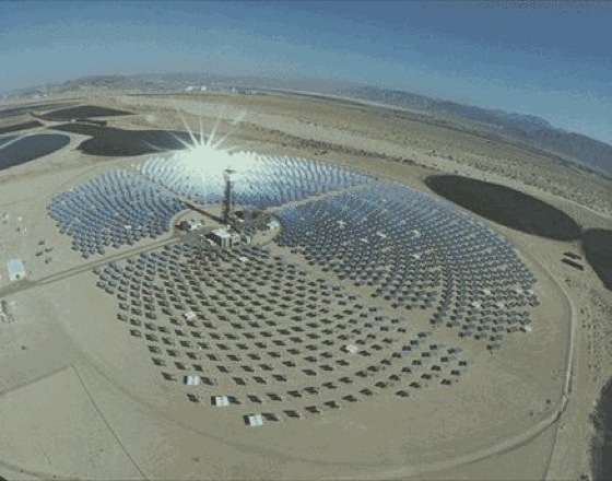 Turmkraftwerk 2: Luftaufnahme des Turmkraftwerks ›Solar One‹ bei Barslow/Kalifornien in der Mohave-Wüste (wird gegenwärtig (2000) zu ›Solar Two‹ umgerüstet).