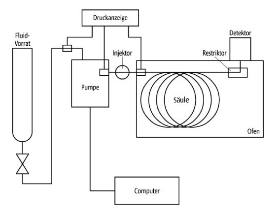 überkritischeFlüssigkeitschromatographie: Schema einer SFC-Apparatur.