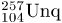 Unnilquadium, Rutherfordium, Unq, Rf, Element der Nebengruppe IV des Periodensystems. Der systematische Name des Elements leitet sich von der lateinischen Bezeichnung seiner Ordnungszahl 104 ab. Es ist ein künstliches, radioaktives und extrem instabiles Element, das erstmalig 1964 in Dubna hergestellt und 1969 von A. Ghiorso (Berkeley) identifiziert wurde. Bis jetzt sind sieben Isotope mit den Massenzahlen 254-259 und 261 bekannt (siehe Tab.). Unnilquadium wird durch künstliche Elementumwandlung hergestellt, wie z.B. beim Beschuß von Californium-Targets mit beschleunigten Kohlenstoffkernen (12C: 71 MeV; 13C: 69 MeV) oder von Curium mit beschleunigten Sauerstoffkernen (90-100 MeV):