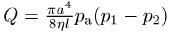 (a: Röhrenradius, l: Röhrenlänge, η: theoretische Viskosität des Gases im Harte-Kugel-Limit, pa: Durchschnittsdruck in der Röhre, p1 und p2: die Drücke an den jeweiligen Röhrenenden).