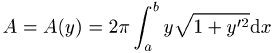 -Achse. Der Flächeninhalt der von der Kurve erzeugten Rotationsfläche, d.h. die Oberfläche des Rotationskörpers, bzw. das Flächenfunktional