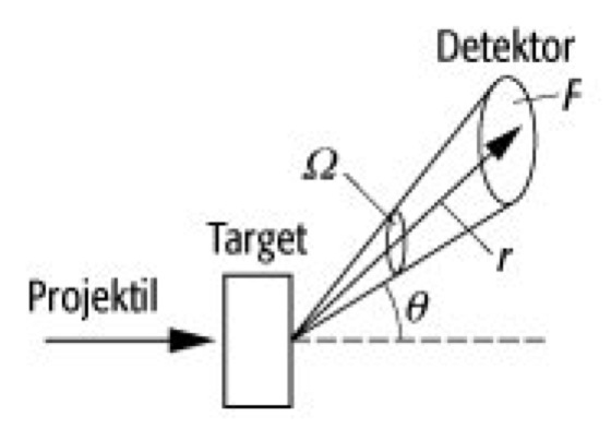 bestimmt, der angibt, mit welcher Wahrscheinlichkeit ein bestimmtes Reaktionsprodukt, beispielsweise ein gestreutes Teilchen, von einem Detektor der Fläche F, die ein Raumwinkelelement