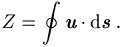 Zirkulation, Integral über ein Vektorfeldu längs einer geschlossenen Kurve S: