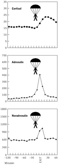 Abb. Abenteuersport 2: Cortisol-, Adrenalin- und Noradrenalinausschüttung bei Extrembelastungen.