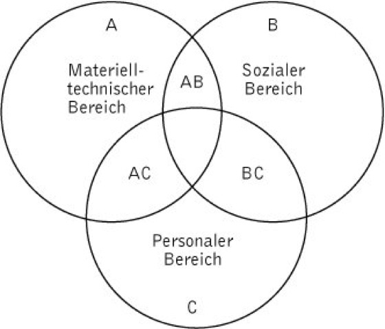 Belastung, auch: Stressor, Streßbedingung, load, die auf eine Person von außen einwirkenden, belastenden Bedingungen (Streß). Jede Belastung nimmt bestimmte Funktionen des Organismus in Anspruch (Beanspruchung). Belastungen in der Arbeit können ihren Ausgangspunkt im materiell-technischen, sozialen und personalen Bereich haben ( Abb. ), z.B. durch Lärm, Konflikte mit Arbeitskollegen oder Überängstlichkeit, oder in den jeweiligen Bereichsüberlappungen: im Schnittbereich AB z.B. durch soziale Isolation am Arbeitsplatz, im Schnittbereich AC z.B. durch Überforderung aufgrund von Arbeitsaufgaben mit hohem Schwierigkeitsgrad und im Schnittbereich BC durch Rollenkonflikte aufgrund von unterschiedlichen Anweisungen von unterschiedlichen Vorgesetzten.