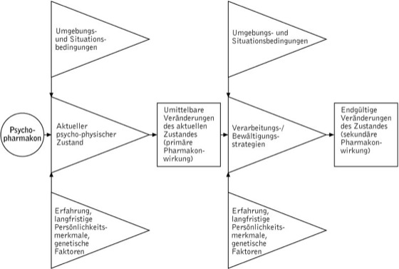 2) Abhängigkeit der Pharmakonwirkung von aktuellen Persönlichkeitsmerkmalen (Zuständen), etwa tageszeitlich bedingten, emotions-, motivations- oder streßbedingten Zuständen.