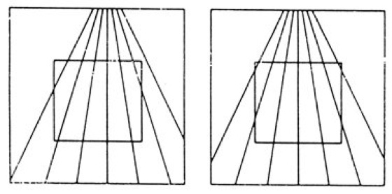 Abb. Ehrenstein-Täuschung: Zwei zu Trapezen verzerrte Quadrate.