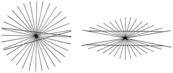 Abb. Höflersche Täuschung. Die zwei parallelen Geraden wirken auseinandergebogen.