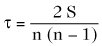 - wobei S die Anzahl jener Rangpaare der zweiten Variablen darstellt, die in richtiger Reihenfolge stehen, wenn die erste Rangreihe in natürliche Ordnung gebracht wurde.